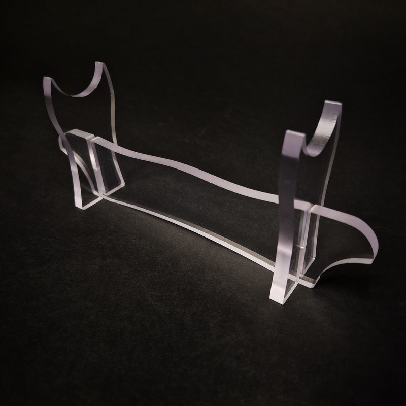 De standaard bestaat uit drie onderdelen en is gemaakt van hoogwaardig transparant plexiglas waardoor de saber goed tot zijn recht komt.