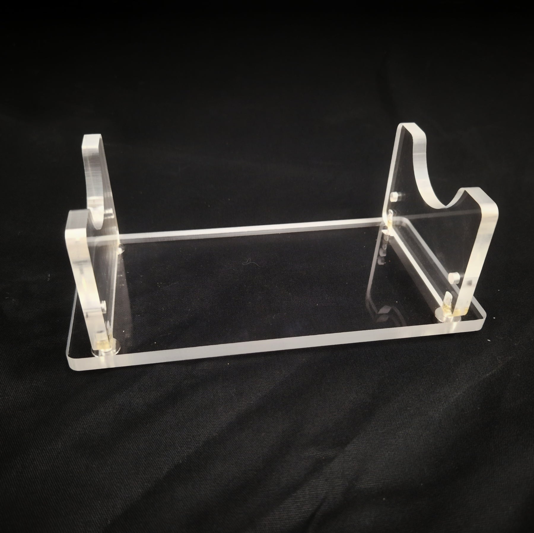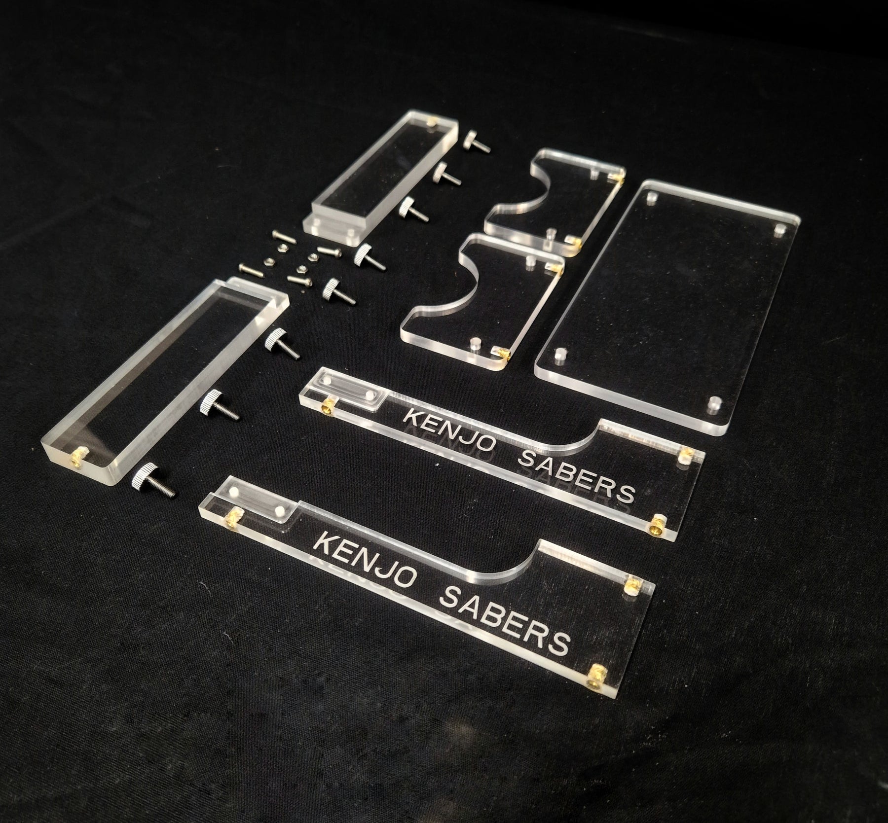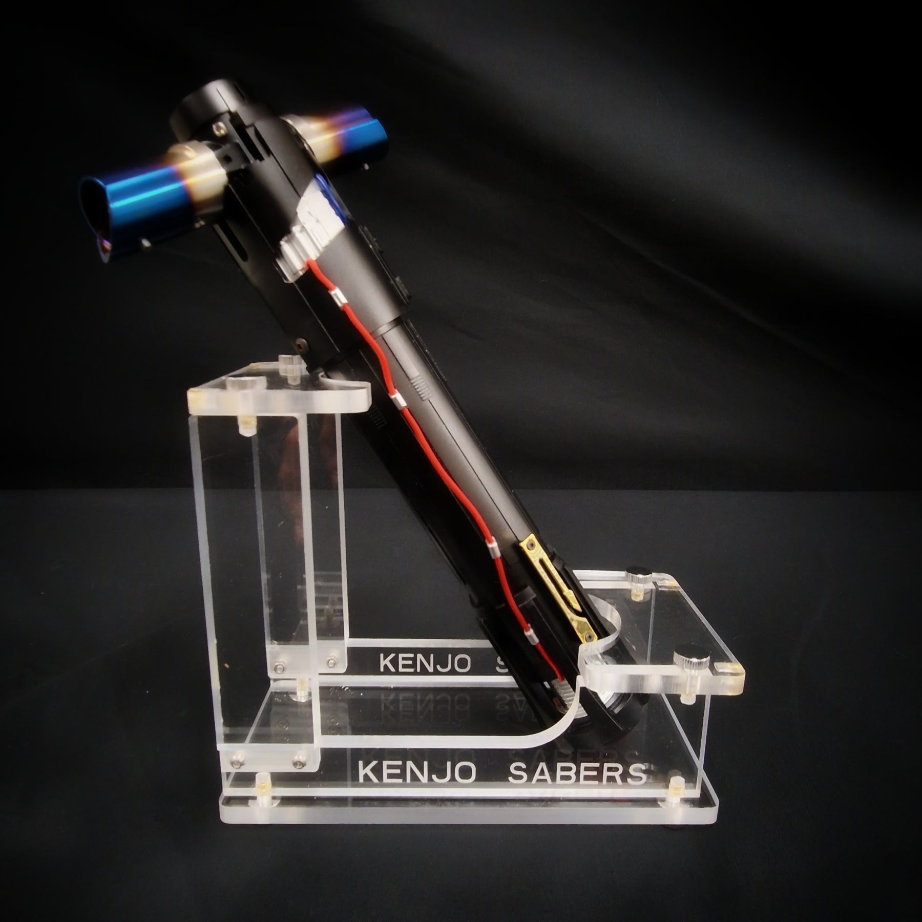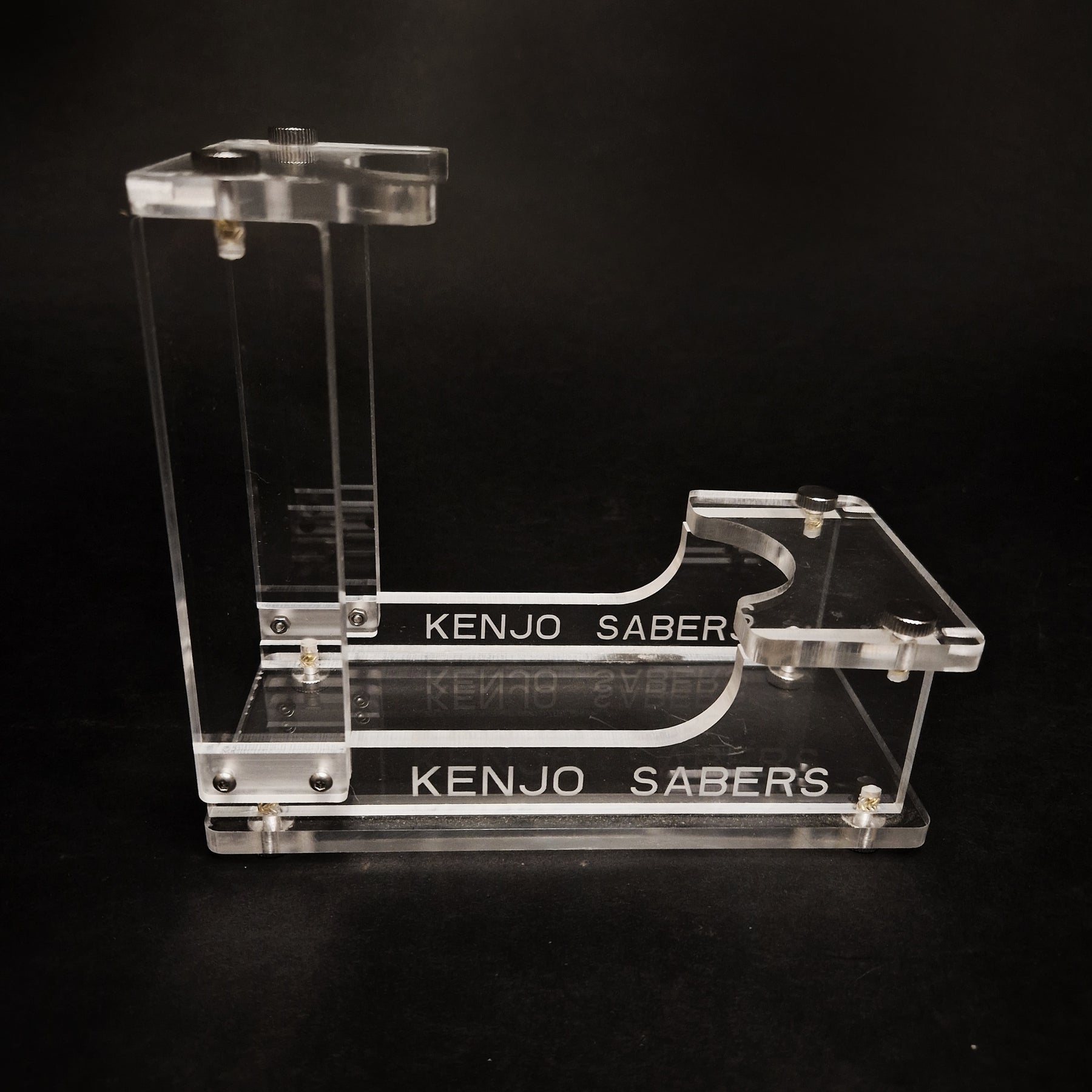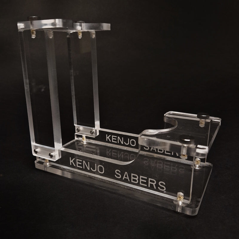 De standaard bestaat uit 7 onderdelen en is gemaakt van hoogwaardig transparant plexiglas waardoor de saber goed tot zijn recht komt.
