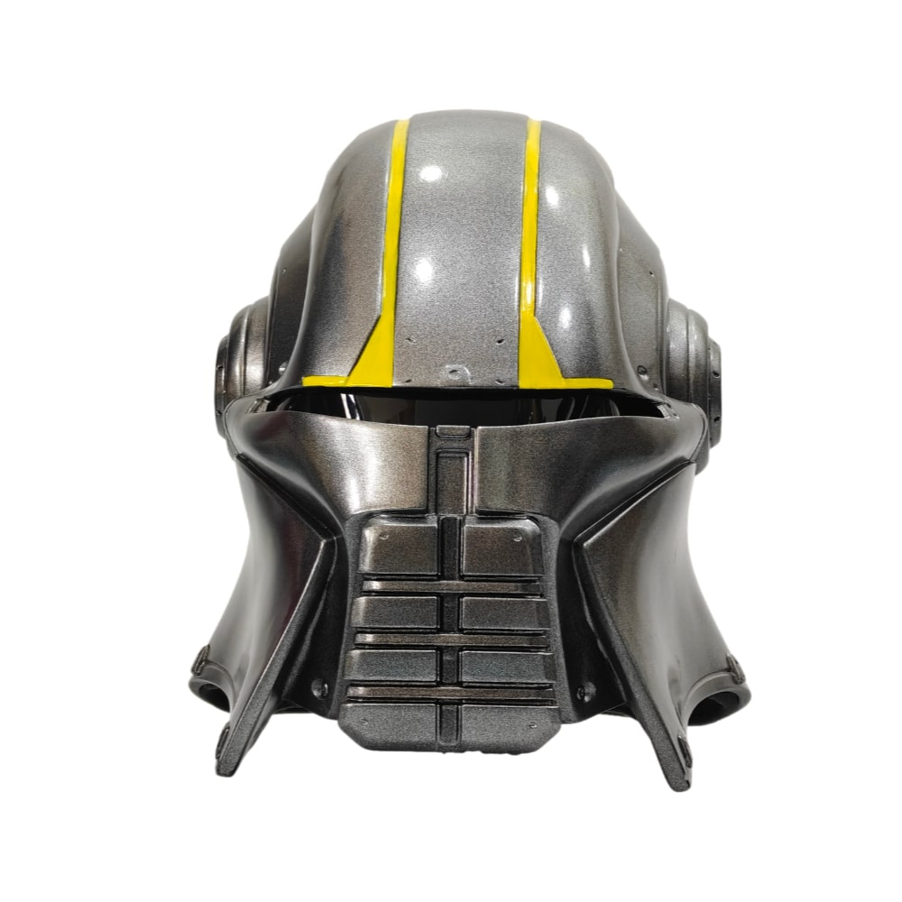 De helm is gemaakt van stevig resin met een metallic afwerking, voorzien van scherpe lijnen, geaccentueerde details en herkenbare gele striping op het vizier. Het ontwerp is strak, agressief en gemaakt om indruk te maken – of je nu kiest voor cosplay, display of beide.