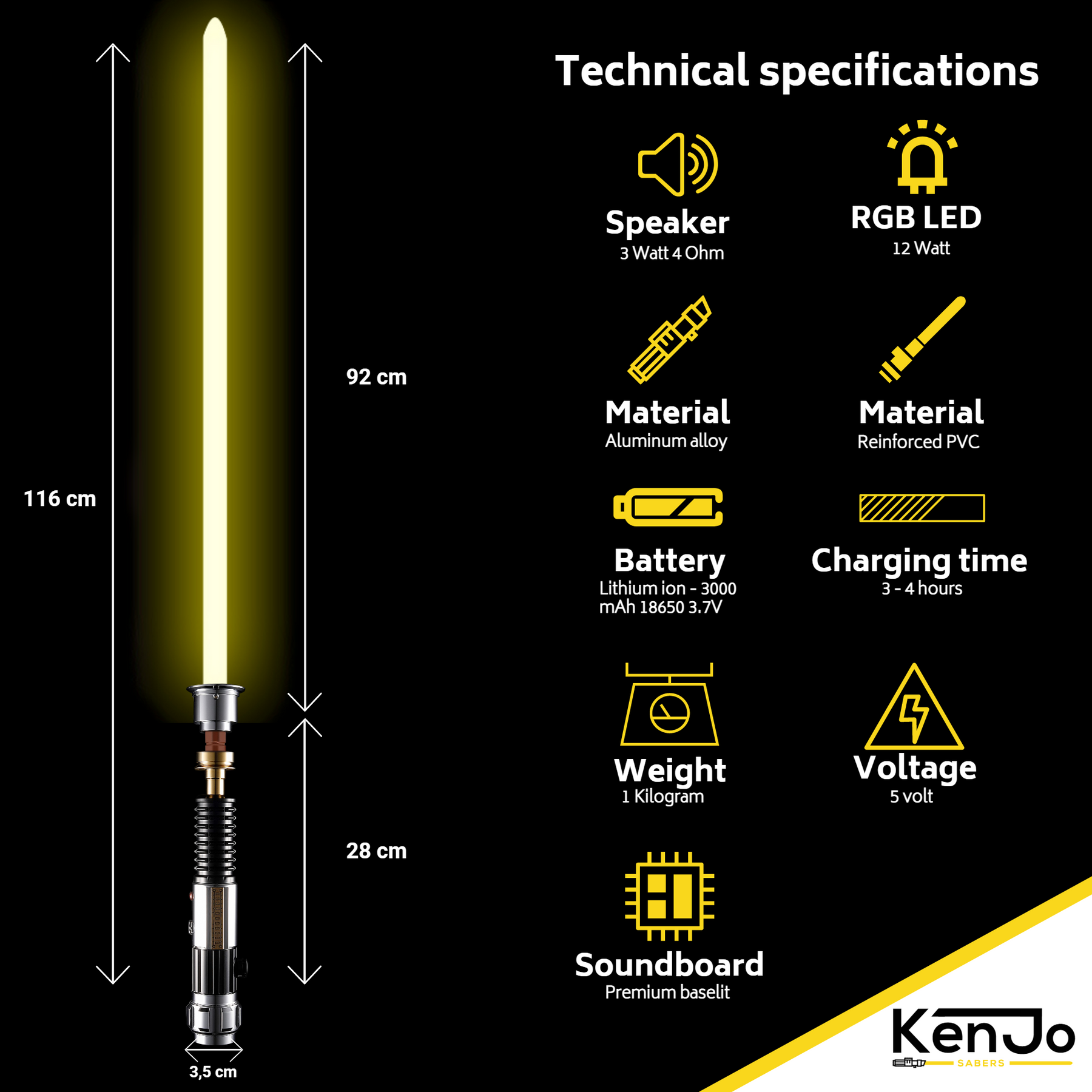 Elk soundboard biedt de mogelijkheid om uit verschillende kleuren te kiezen en is voorzien van verschillende geluidstypes. Een baselit saber is voorzien van een hol zwaard en een krachtige 12watt lamp, in een neopixel zwaard zit een super heldere 40 watt led strip welke het mogelijk maakt om verschillende blade styles en start up styles te laten zien. Afhankelijk van het soundboard dat je kiest gebeurd dit door middel van pre sets of zijn deze zelf te kiezen uit een aantal opties of zelfs volledig te customizen. Bij sommige KenJo Sabers soundboards is er zelfs een handige bluetooth app om de lightsaber mee te bedienen.