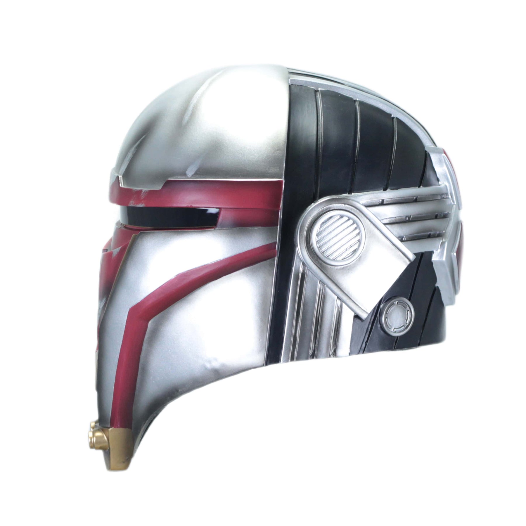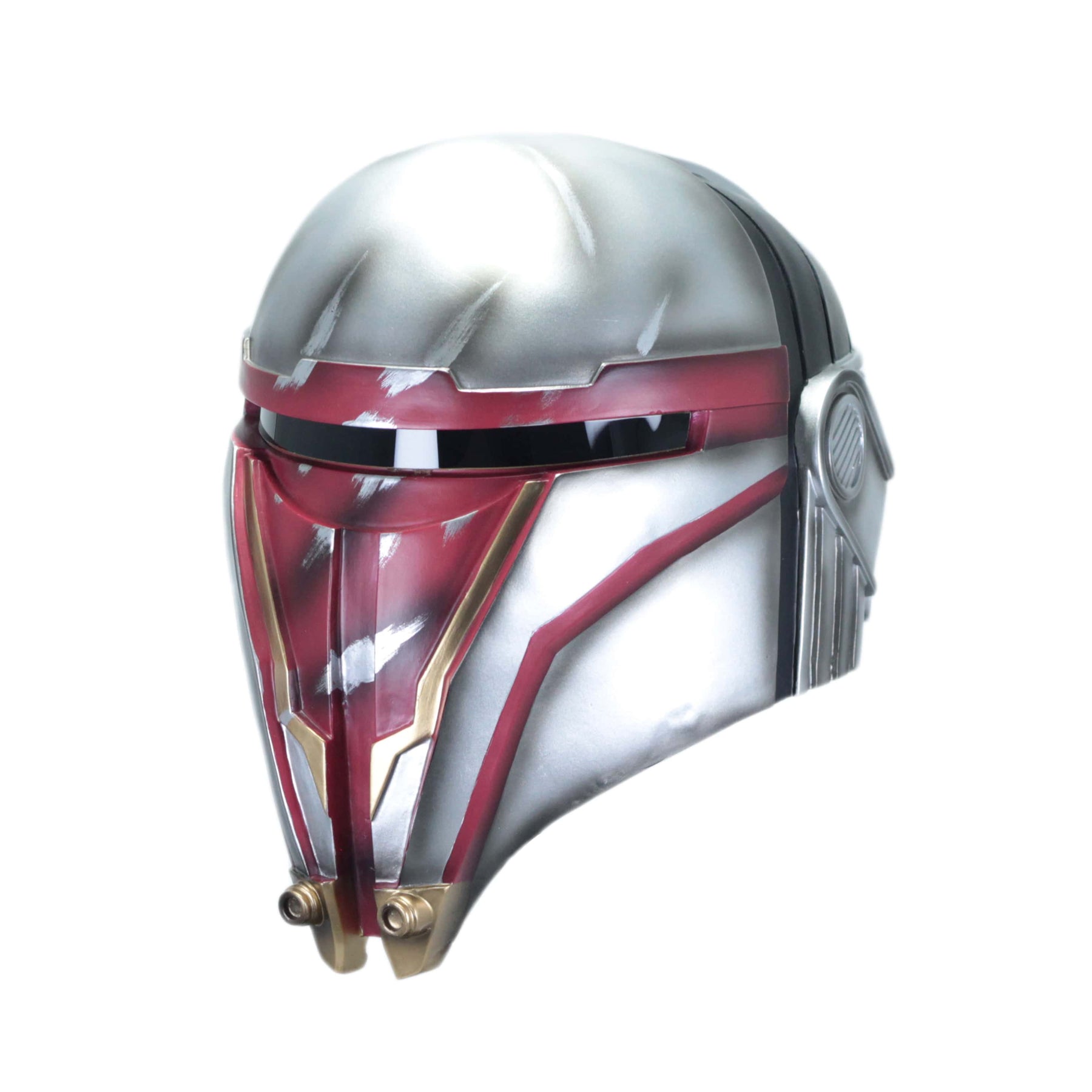 Het ontwerp bevat de kenmerkende elementen van Darth Revan’s helm: het metallic zilveren en zwarte kleurenschema, met een mystieke uitstraling en geometrische lijnen die een dreigend en krachtige uitstraling geven. Deze helm is een eerbetoon aan de iconische Sith Lord en zijn rijke geschiedenis in de Star Wars mythologie.