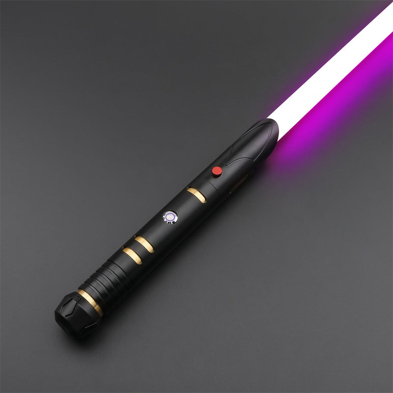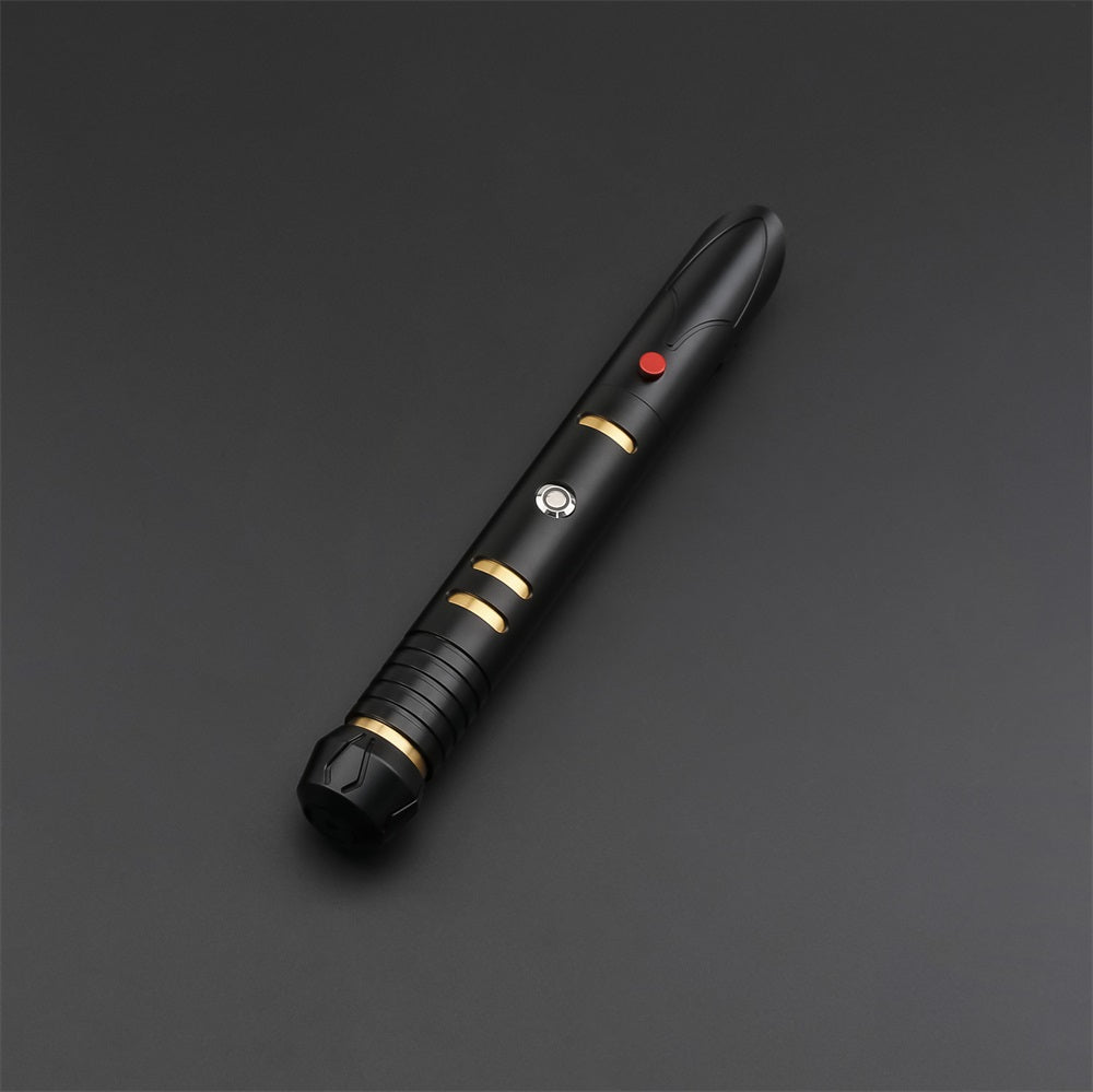 De Phantom Guard eert de legendarische Temple Guards. Deze zwarte uitvoering combineert een verfijnde, maar intimiderende uitstraling met een gestroomlijnd design. De diepzwarte hilt, verrijkt met goudkleurige accenten en een opvallende rode knop, ademt pure kracht en precisie. Het ergonomische ontwerp ligt comfortabel in de hand, perfect voor zowel intensieve duels als een indrukwekkende display.