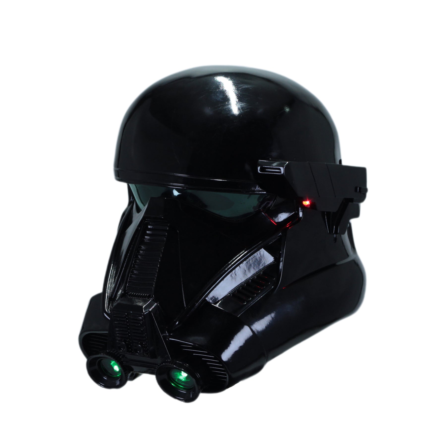 Wat deze versie bijzonder maakt, is de geïntegreerde verlichting: groene LED’s in de kaaksectie en een rode LED aan de zijkant, precies zoals in de films. Dit versterkt de herkenbaarheid én maakt de helm extra geschikt voor cosplay, fan-events of fotoshoots in low light.