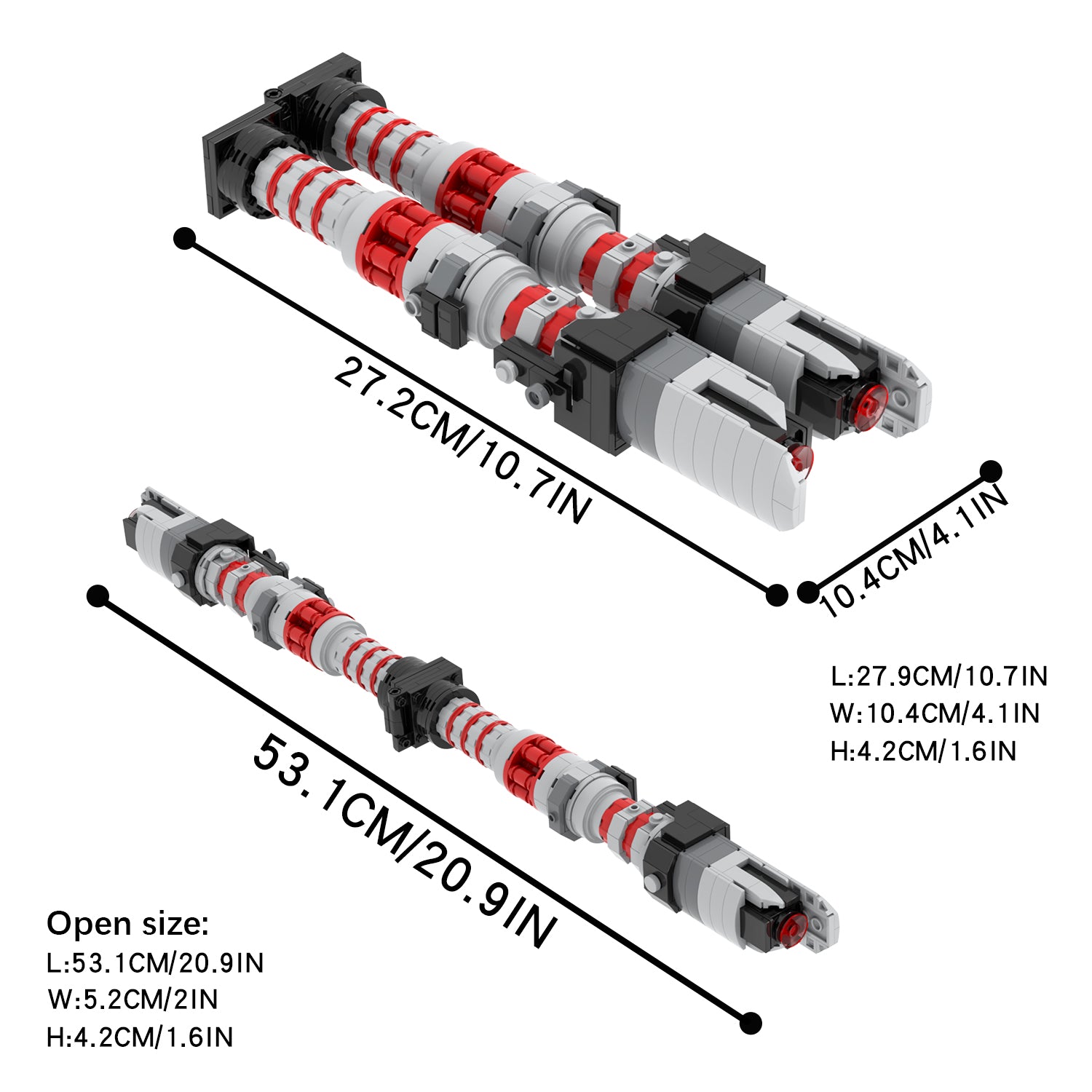Ervaar de kracht van de dark side met de Super Bricks Delphic bouwset. Deze dualsaber, geïnspireerd door de heldin uit de sequels in haar dark side variant visie. Delphic bestaat uit twee zilverkleurige sabers met rode accenten. Dankzij het openklapsysteem ontvouw je de gebouwde sabers automatisch tot een dualsaber. Voeg deze indrukwekkende Super Bricks set toe aan je collectie!