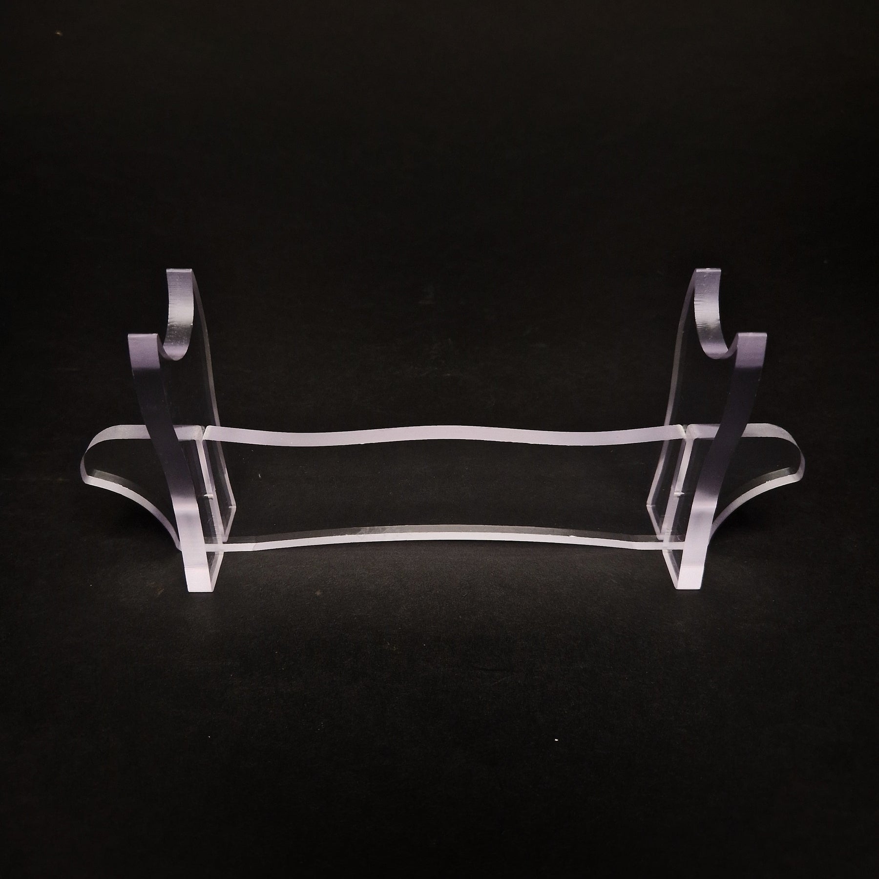 De standaard bestaat uit drie onderdelen en is gemaakt van hoogwaardig transparant plexiglas waardoor de saber goed tot zijn recht komt.
