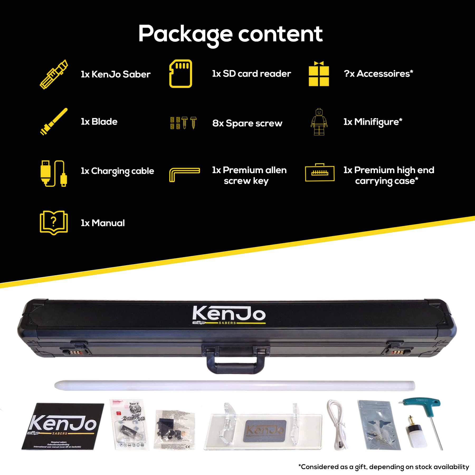 Deze saber wordt geleverd in de High-end KenJo Sabers koffer, hierin bevinden zich de volgende items: