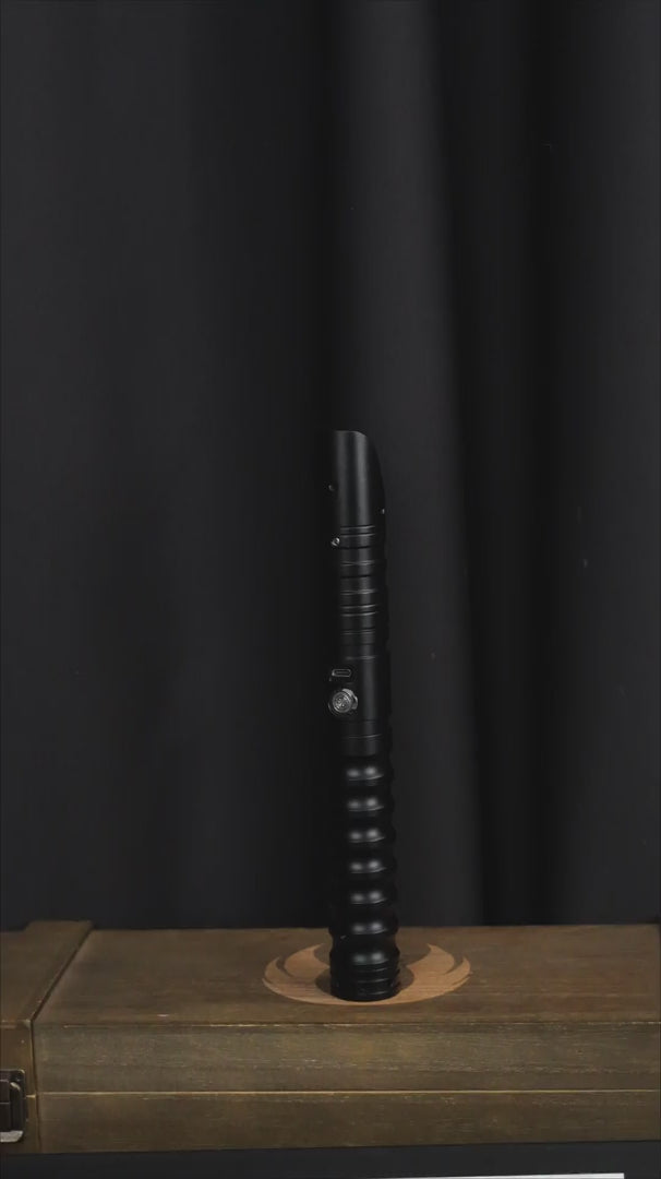 Beschrijving: Protege is een volledig zwarte saber gemaakt van aluminium. Dit zorgt ervoor dat het handvat licht van gewicht is en toch erg sterk is. Dit is misschien wel de perfect instap saber zonder in te leveren op kwaliteit. Het handvat is voorzien van vinger vormige uitkepingen waardoor de saber super stevig vast gehouden kan worden en niet snel uit je handen zal glijden tijdens het duelleren of spinnen. De emitter is schuin afgesneden wat de Protege een sjieke afwerking geeft. Aan de onderzijde van de saber bevind zich een ingebouwde connectorring. Met een tweede saber zoals bijvoorbeeld de Acolyte hoef je dus niet een extra connectorring te kopen om een saberstaff te maken. De vlakke onderzijde zorgt er tevens voor dat de saber perfect stevig recht op gezet kan worden om te worden tentoongesteld in huis.