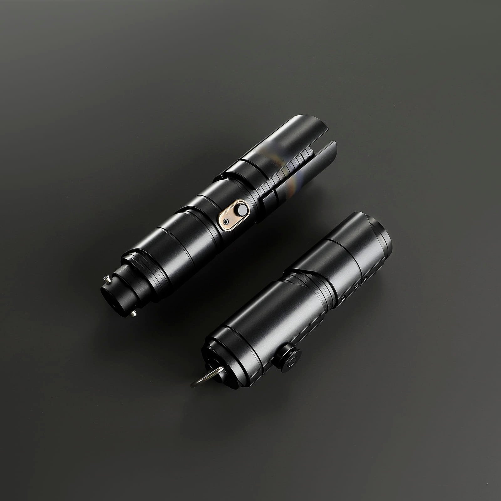 Beschrijving: De Twinstrike is een baanbrekende saber die innovatie en veelzijdigheid naar een nieuw niveau tilt, geïnspireerd door de mysterieuze vreemdeling uit de meest recente series uit het oude tijdperk. Deze saber kan als één enkele blade worden gebruikt of worden gesplitst voor dual-wielding. Het slanke, zwarte ontwerp met robuuste emitter en strakke afwerking straalt pure kracht uit. De saber kan wanneer deze in elkaar zit met behulp van de D-Clip gebruikt worden om de saber aan je riem te hangen. Je hebt dan ook de riemclip nodig.  Dit ongeëvenaarde ontwerp biedt de ultieme combinatie van stijl en functionaliteit. Perfect voor vechters die hun vaardigheden naar een hoger niveau willen tillen.